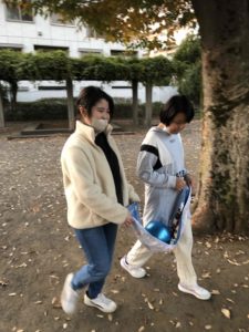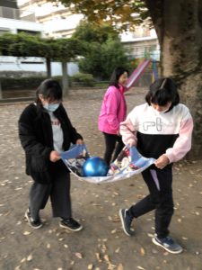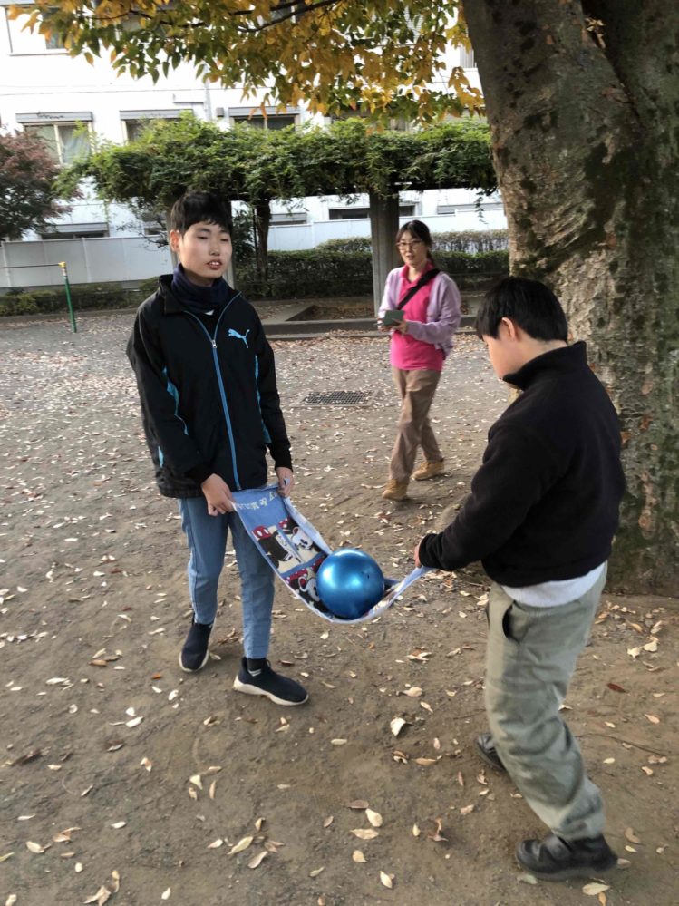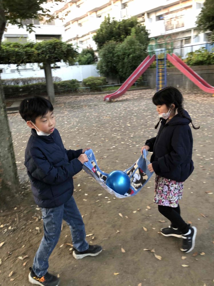タオルでボール運び! りぼんU 2025.11.21 こんにちは。 昨日のりぼんUは、早くきたお友達はおやつの買い物と東伏見公園に行きローラーすべり台やロープのぼりで楽しく遊びました🎵 後半は遅く来たお友達も一緒にしじゅうから②公園に行き”タオルでボール運び”をしました!!長方形のタオルの四角をお友達と持って真ん中にのせたボールが落ちないように木を一周して次のペアにバトンタッチ🌟お互いにお友達の歩くペースなどみて落ちそうで落ちない感じでみんな成功していました😊✨ りぼんU