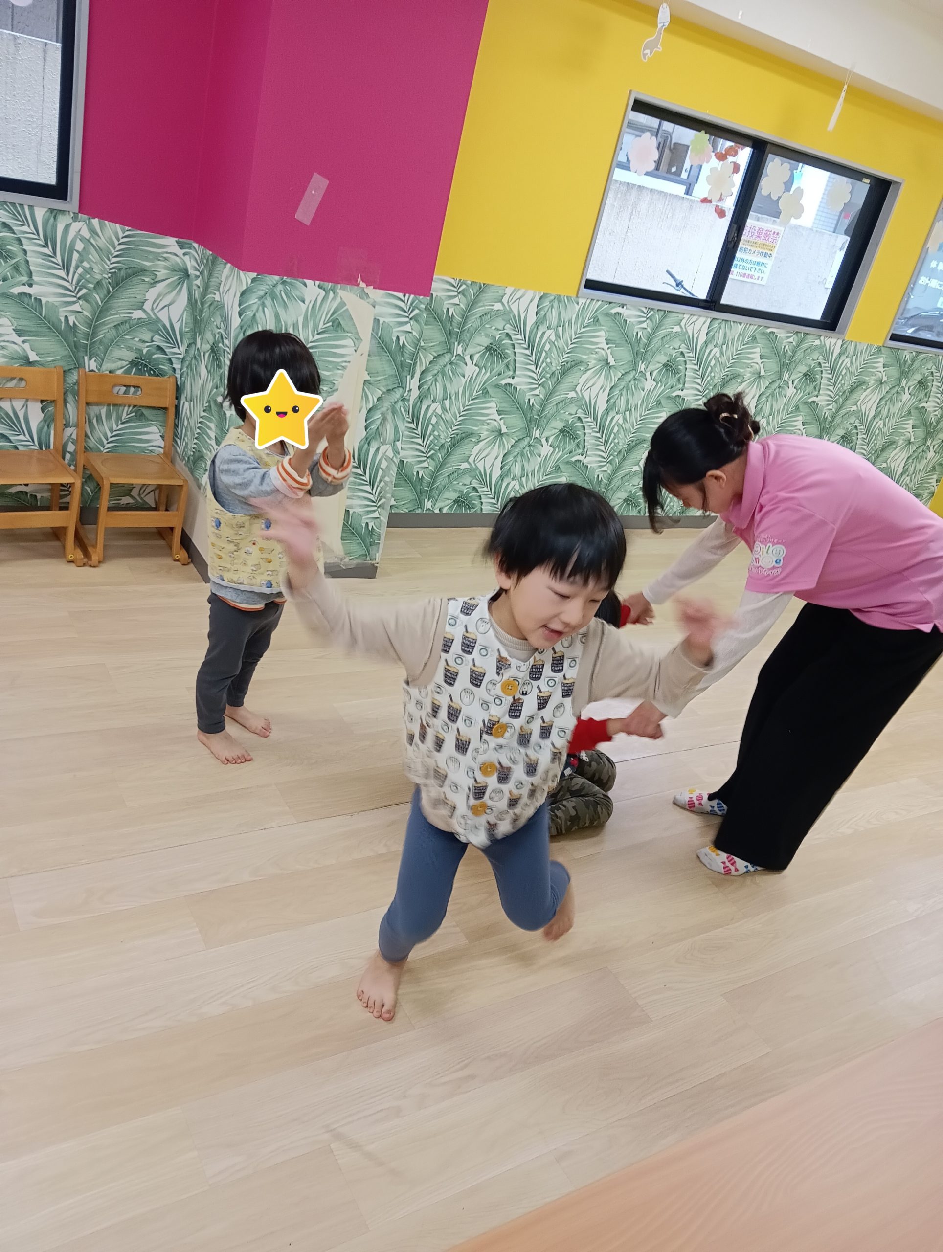 午前のはじまりの会の後に、サンサン体操をやったのですが、とても元気に体を動かしました!