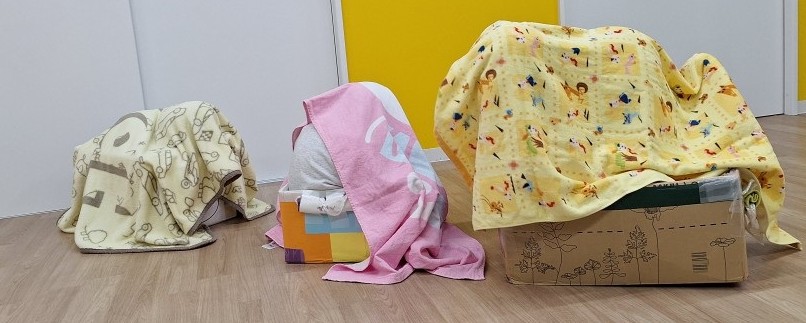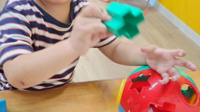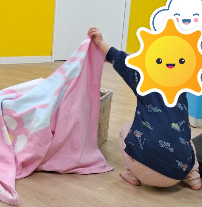 今週の午前中の活動は、「かくれんぼ」をしています。鬼が10数えるうちに子どもたちはそれぞれ好きな場所に隠れます。箱の中、マットの中、ロッカーの中など工夫して隠れていましたよ。箱に箱で蓋をして見えないようにしたり、小さなロッカーの中に体を丸くして入ったりなどスタッフが思いつかないような隠れ方も見せてくれました。鬼のお友だちは、「ここかな?」と頑張ってみんなを見つけていましたよ☆
