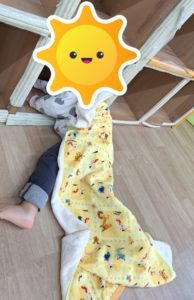 今日はかくれんぼをしました。マットや段ボールに隠れていきました✨
