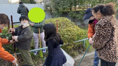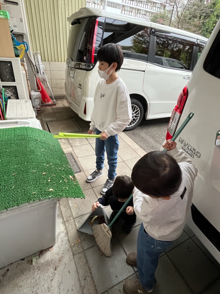 今日は、早く来た組は、おやつを買いに行きながらのんびりお散歩してきて、玄関前の落ち葉掃きをしました🍂✨