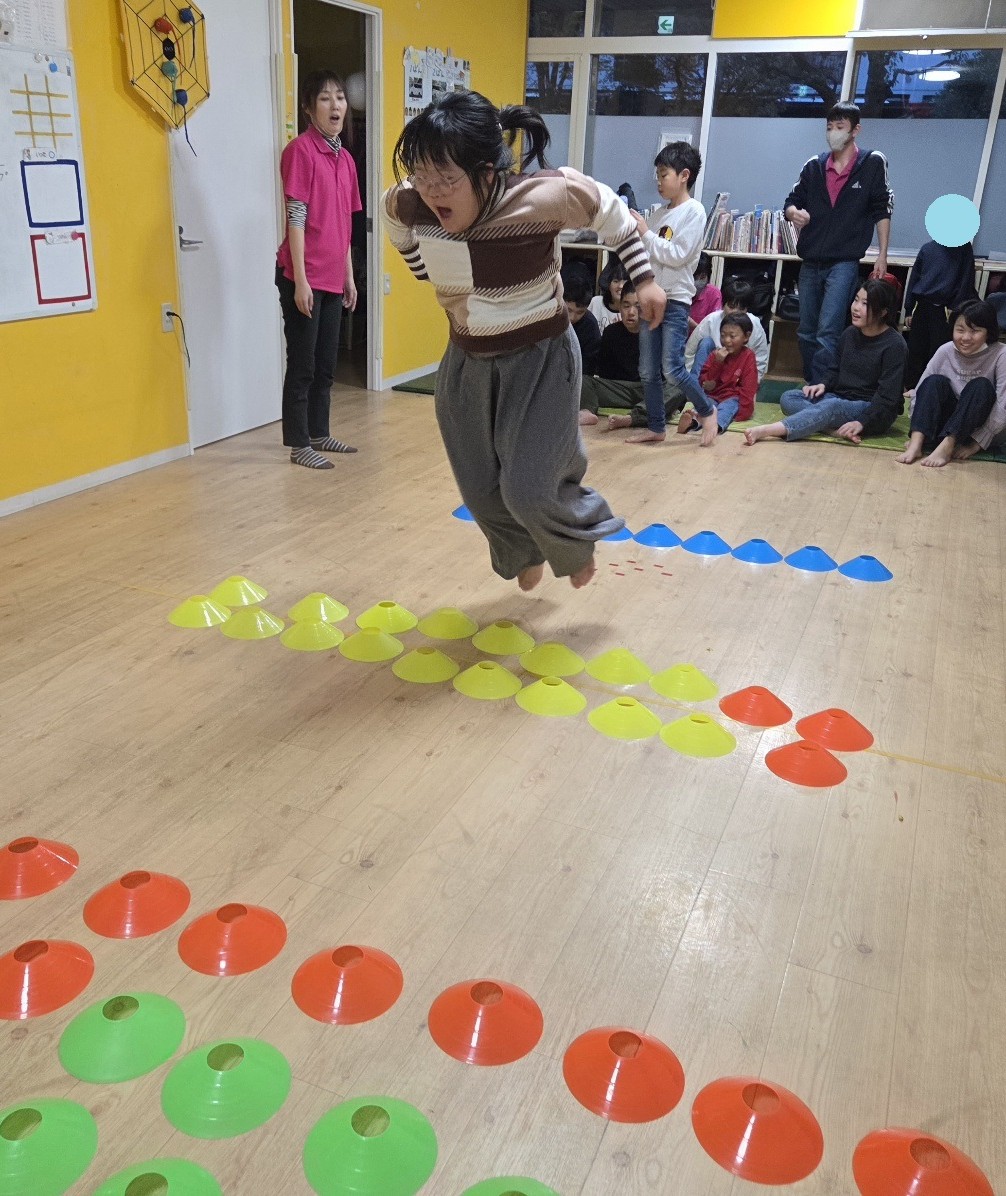1列、2列、3列とマーカーを置いて跳ぶのですが、みんな両足を揃えて張り切ってジャンプしていました😊✨