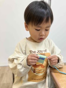 今日のワクワク上石神井の様子です☆ ワクワク上石神井平仮名を書いて素敵な作品が出来上がりました☆ 2025.11.28 こんにちは! 今日は天気も良く、気持ちの良い一日でしたね♪ 今日もワクワクではかくれんぼを楽しんでいきました!回数を重ねるごとに隠れるのが上手になっています✨ ここに隠れてみよう! 見つかっちゃった! その後はペガーボールをし思い切り、体を動かしました。 午後は個別と、指先遊び・ペッタブロック・あおむしのマグネットのコーナー遊びを楽しんでいきました。指先遊びでは、自分が取り組みたい遊びを選び、集中して取り組んでいましたよ! 紐通しに挑戦です! 個別の様子です。 クリスマスツリーに飾りを描いていきました🎄 平仮名を書いて素敵な作品が出来上がりました☆ ワクワク上石神井