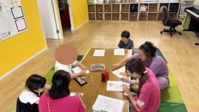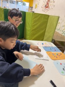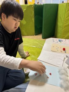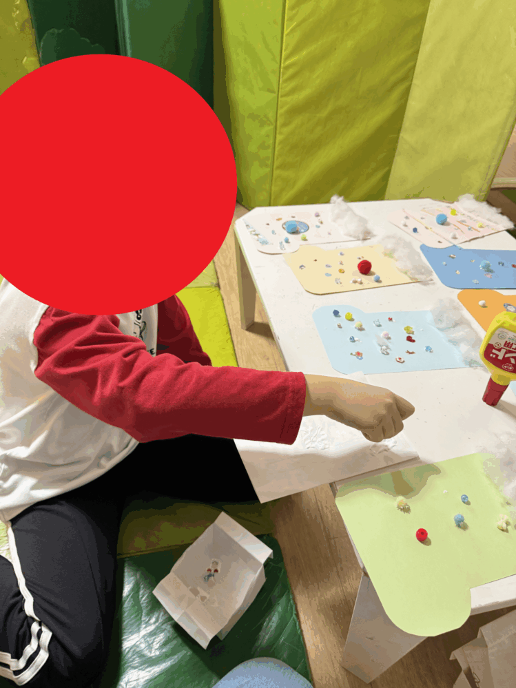 りぼんUでもクリスマス工作の靴下作りをしました。いろいろなカラーの画用紙に装飾を付けました✨