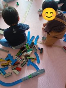 12月が始まりました! ワクワク滑り台の上から ピース✌ 2025.12.01 こんにちは 今日から12月です 公園に行く途中のお店屋さんにも クリスマスツリーが飾られたり、 トナカイが置かれていて子どもたちも 色々見つけてうれしそうに報告をして くれます! 公園では、お砂場でお山を作ったり 落ち葉を集めたり楽しみました。 滑り台もの上から空を気持ち良さそうに 見ている姿も見られました。 滑り台の上からピース✌ お山を作るよ! 午後のプラレール遊びでは、お友達と 一緒に繋げたレールの上を電車を走らせたり 組み合わせを考えてどんどん長くレールを 繋げていました。 一緒に遊ぼう!