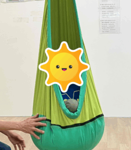 サーキットで体を動かした後は、ハンモックとトランポリンです。