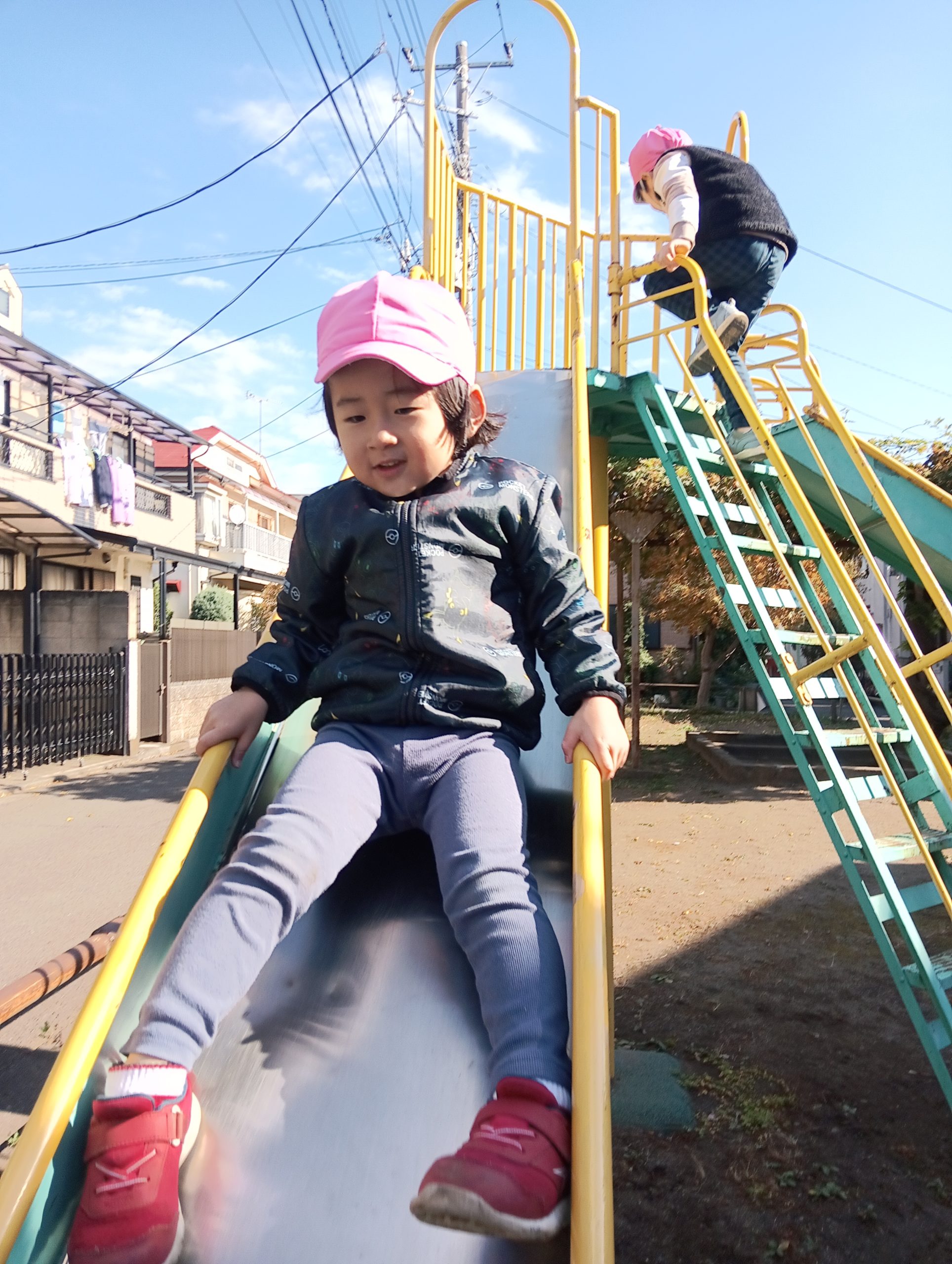 その後の自由遊びの時間ではみんなですべり台を滑っては、周りを走ってまたすべり台を上って。。。を繰り返していました(*’▽’)