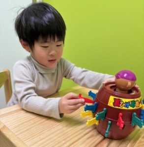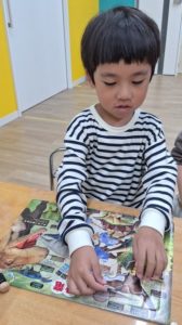 コーナー遊びでは、パズル、指先を使う玩具、色形ブロック、積み木をそれぞれの興味に合わせて行いました。