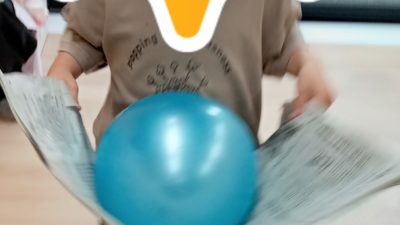 その後はボール遊びをしました。大きなボールと小さなボールを使って体を動かしましたよ。久しぶりにボールプールをしました。ボールをたくさん集めて、上から降らしたり、ボール滑り台も楽しみましたよ♪