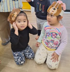 今週の午前中の活動は「むっくりくまさん」をしていきます。