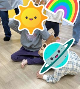 今日もむっくりくまさんを楽しんでいきました✨くまさん役を今日は子どもたちだけで頑張ってくれましたよ!捕まえる時に「むしゃむしゃ」と食べる真似をしているお友だちもいました☺