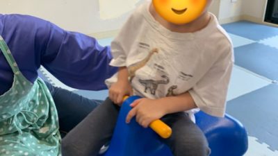 小さなお友達は、職員と一緒に