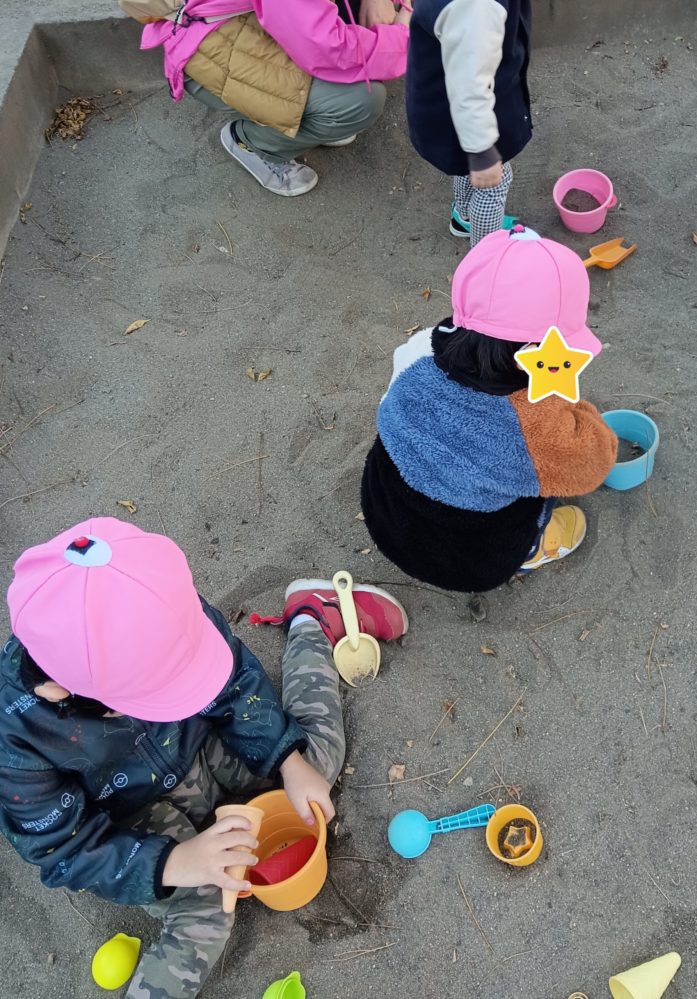 金曜日のりぼん りぼん 2025.12.23 こんにちは! 12月12日金曜日のりぼんは 午前はサッカー 午後は公園あそびをしました。 午前は段ボールのゴールに向かって、ボールをキック!! みんな上手にゴールを決めていました(^^♪ 自由遊びでは砂場で遊んだり、すべり台を滑ったり! シーソーが気になるおともだちもいました( *´艸`) 午後はあまり行かない、遠めの公園へ! 大きなすべり台があり、みんなで「せーの」で一斉に滑る遊びもしました(*´▽`*) 寒かったけれど、沢山体を動かして温まったりぼんでした。 りぼん