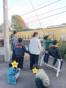 午後はバランスサーキットと電車を見にお散歩をしました。
