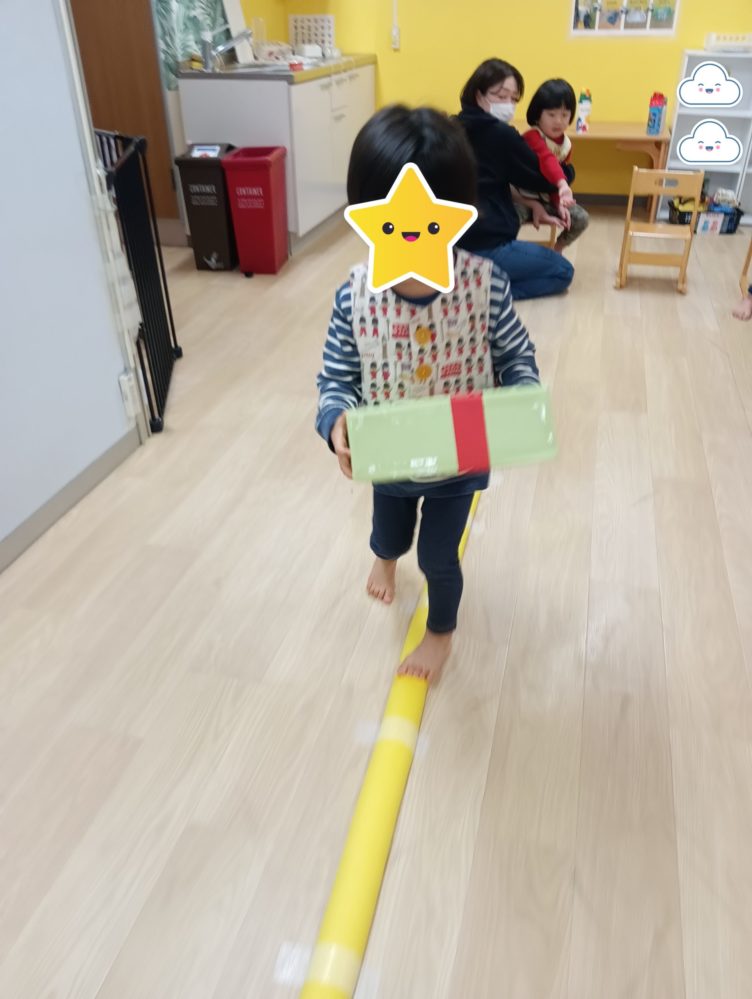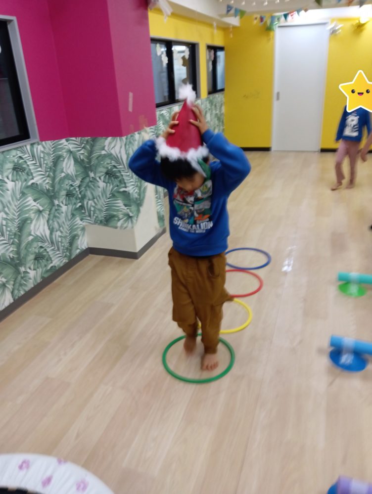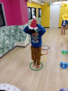 みんなにはサンタさんになってもらって、ジャンプしながらプーさんにプレゼントを届けてもらいました!