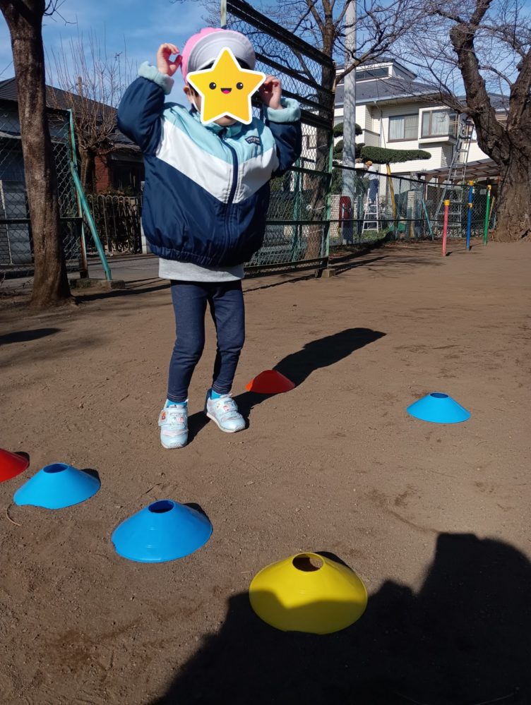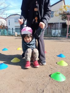 午前は公園で、うさぎになりきってジャンプして進む活動に取り組みました。