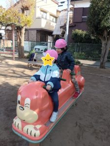一緒にロッキンパッピーに乗ったり、シャボン玉を追いかけたり!仲良く遊んでいました(*’▽’)