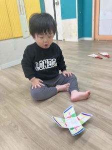 コマの模様が変わる様子を興味津々で見ていましたよ!