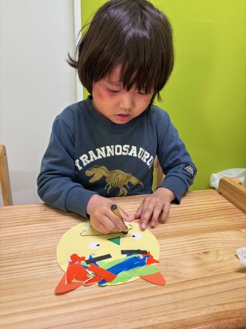 個別では鬼のお面の製作やスティッキーなどに取り組みました。