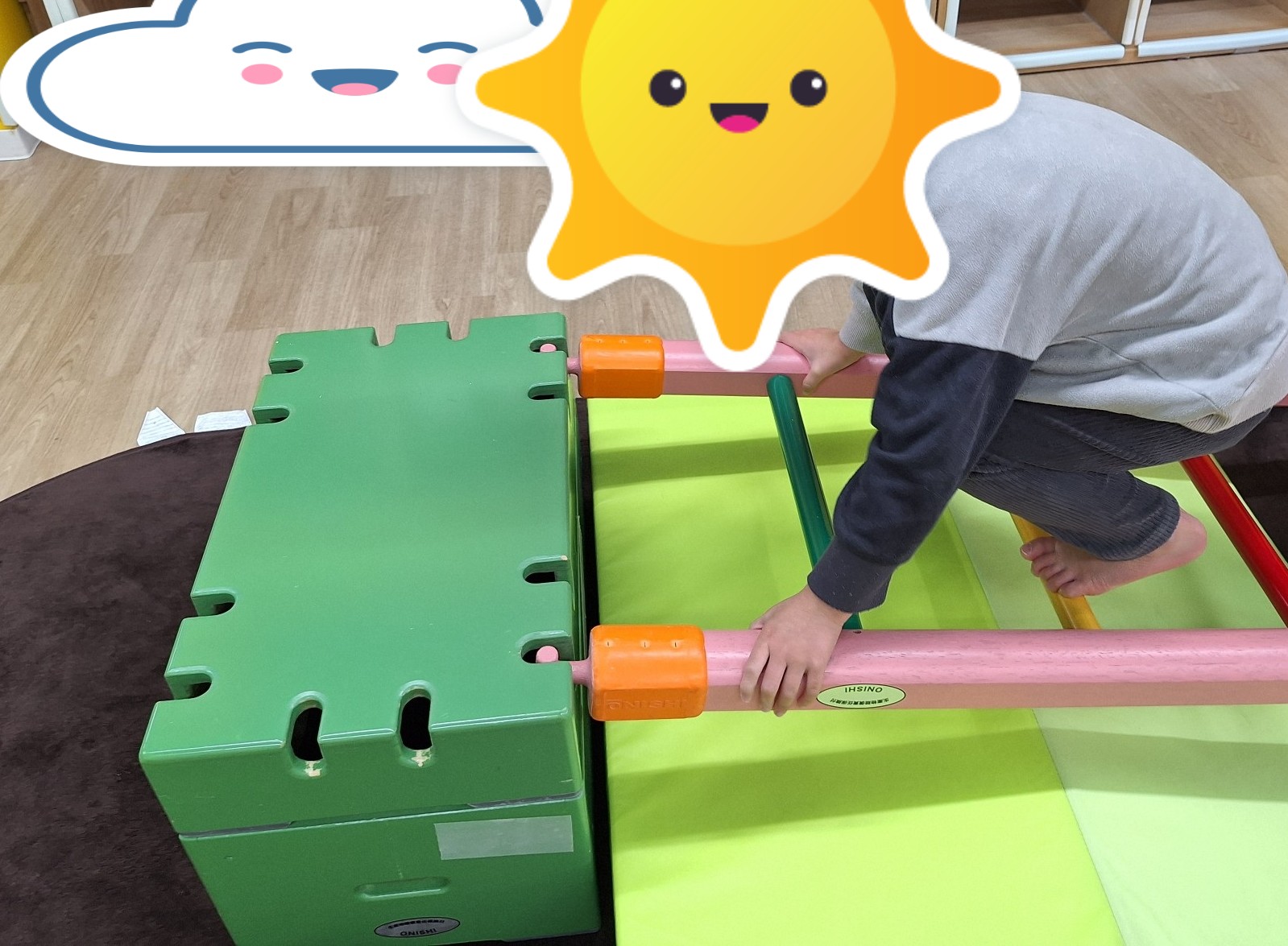 今日ははしご・トンネル・平均台マットで体を動かしましたよ。