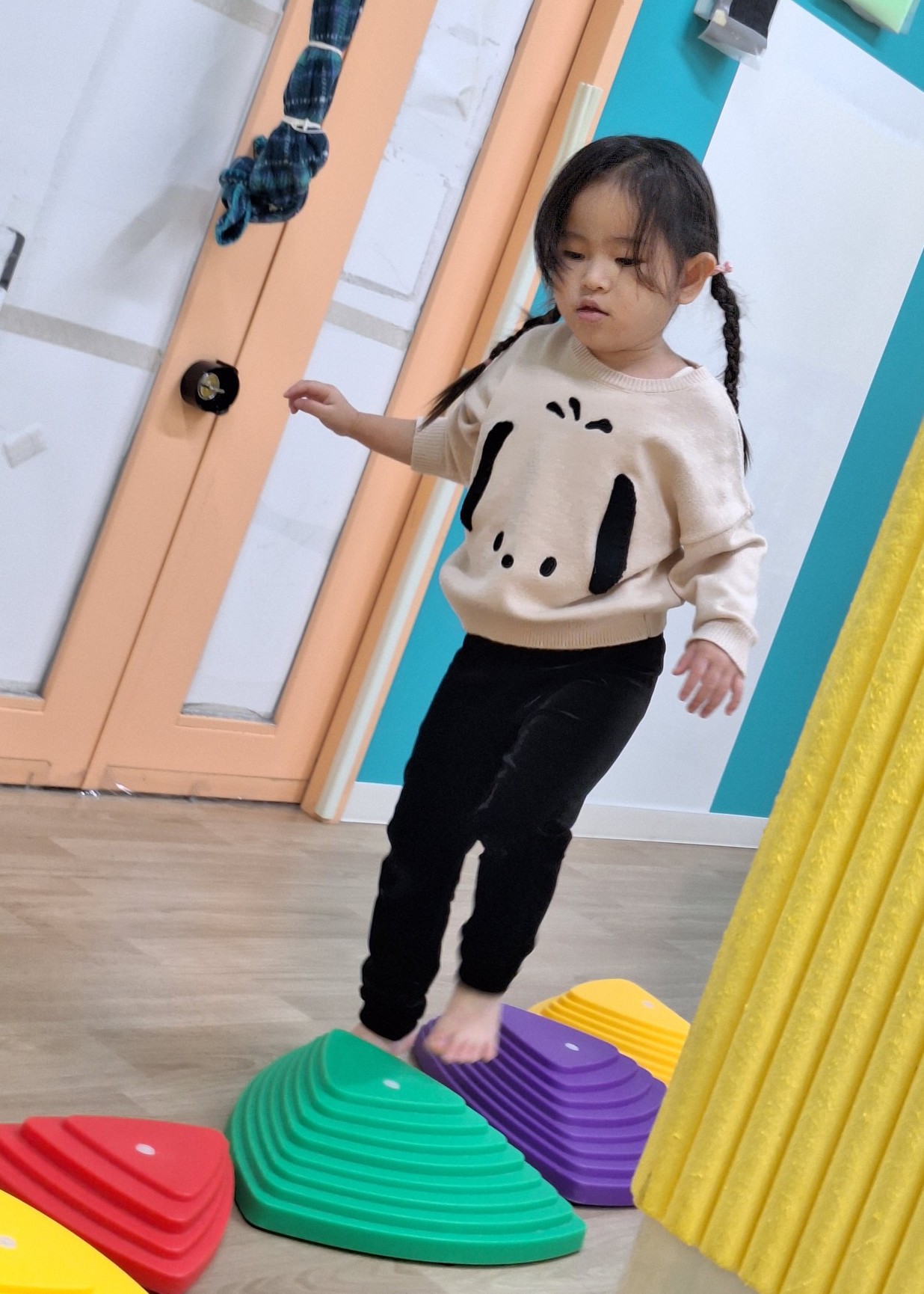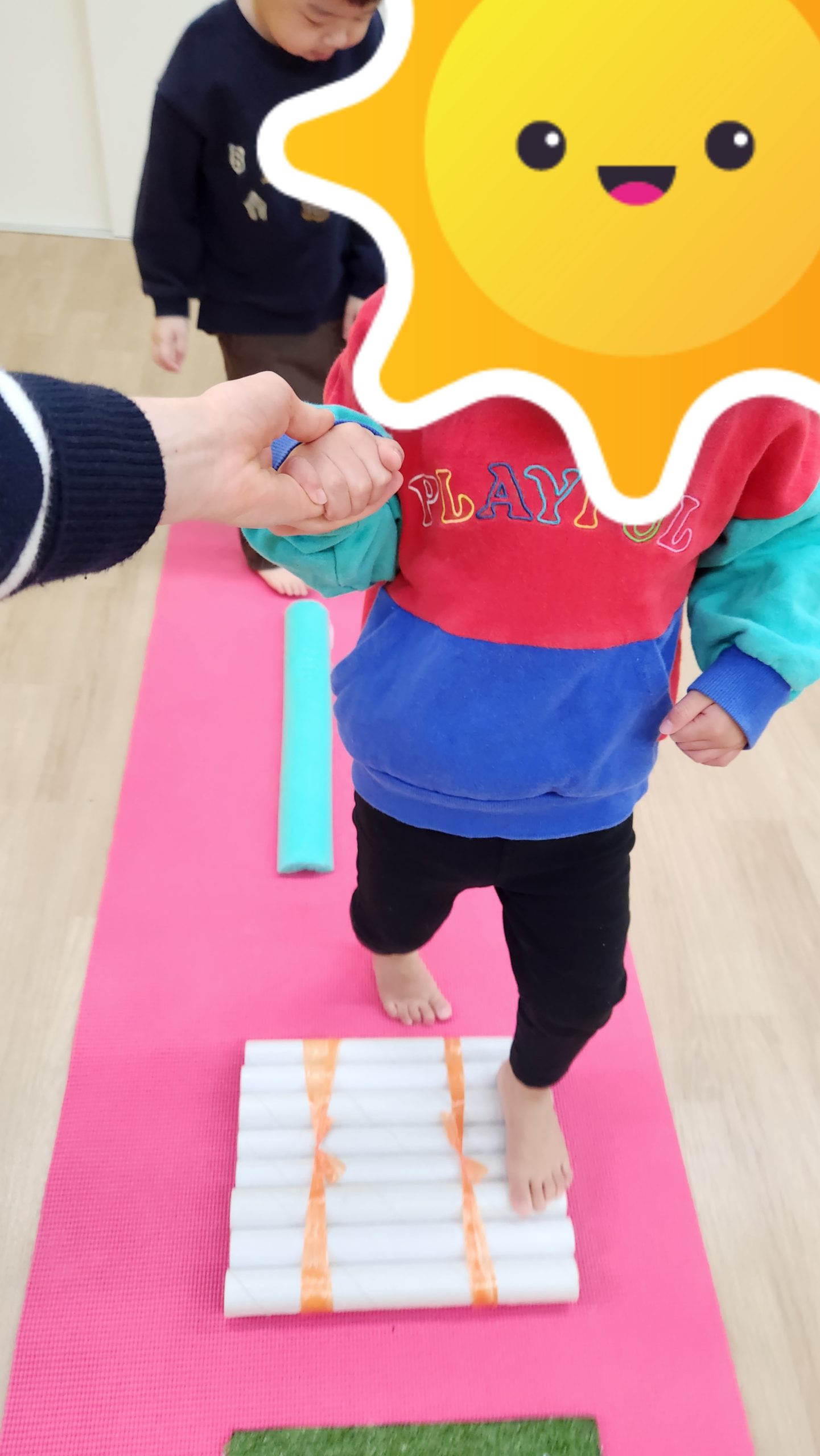 今日は「平均台」「バランスストーン」「トンネル」「感触マット」の4つで、サーキットを行いました。