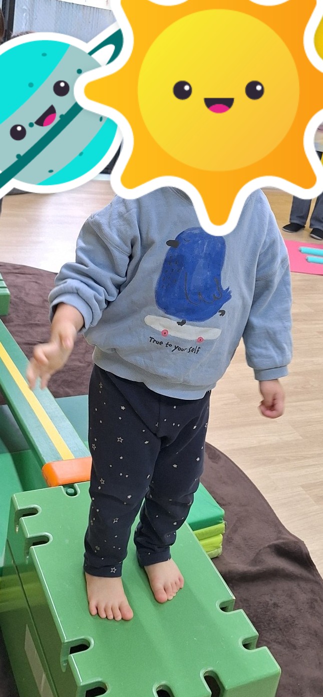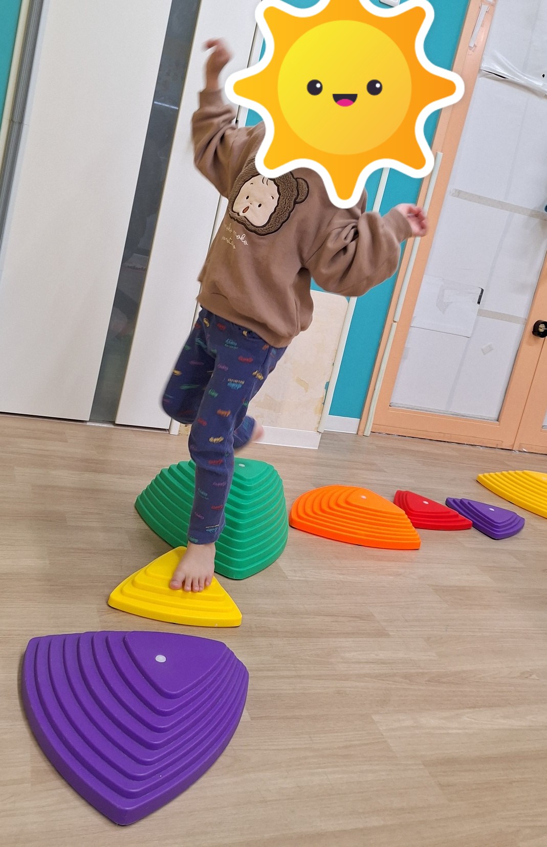午前中の活動はサーキットをしました。平均台、バランスストーン、トンネル、感触マットをしましたよ。たくさん体を動かしていきました。