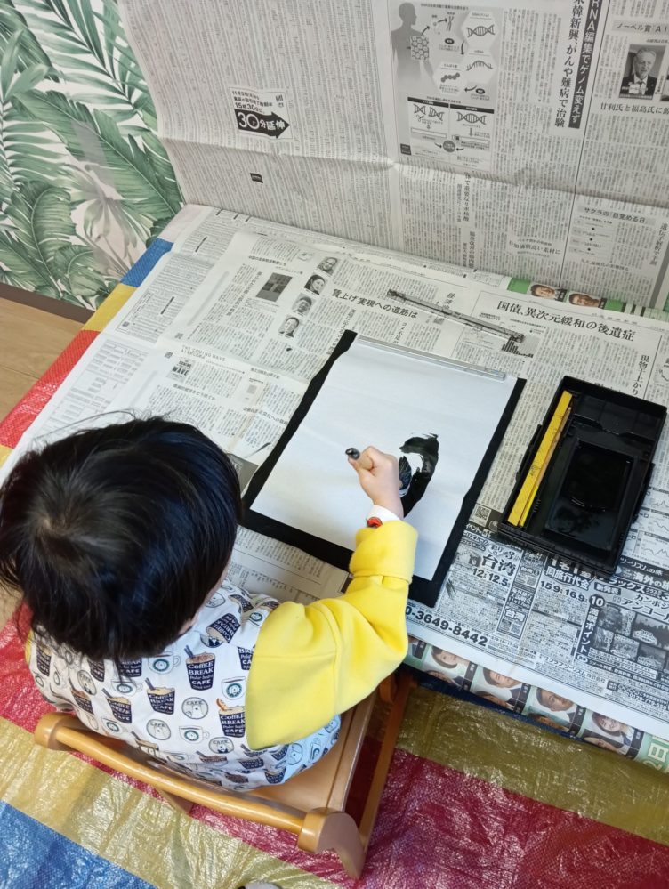 その後はお正月を感じる書き初めをしました。