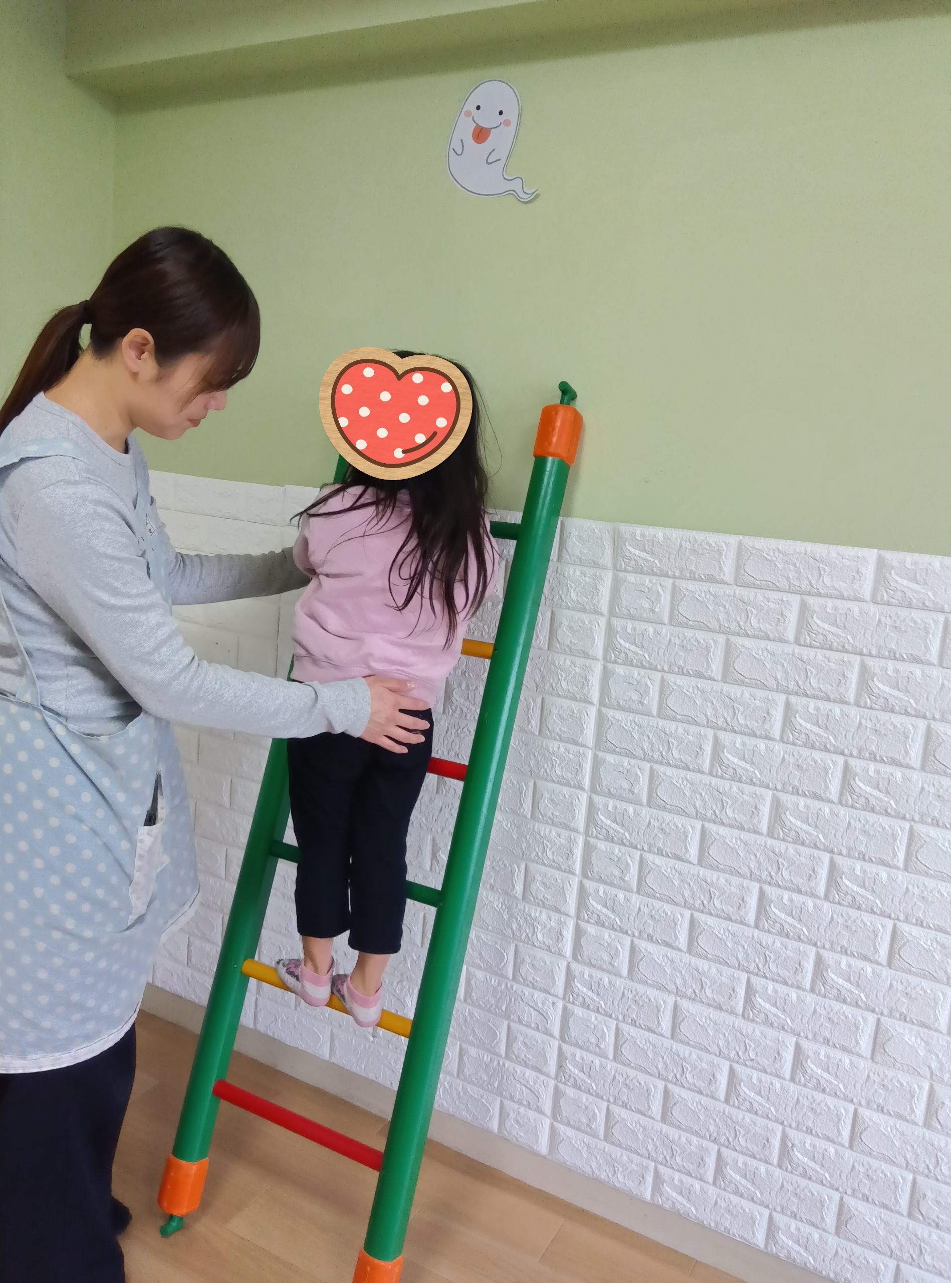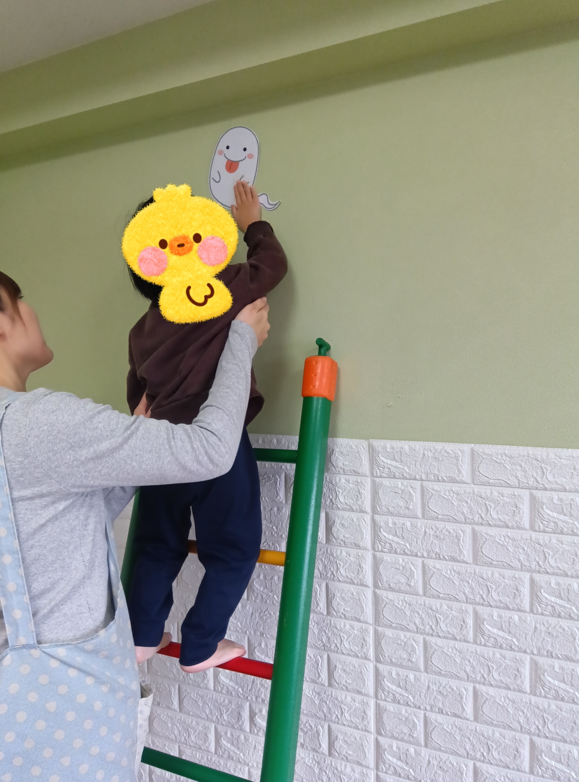 お化粧したよ♡ ワクワク 2026.01.28 こんにちは! お友達で輪になって集まり、トントンとレゴを打って大工さんごっこをしたり、スポンジを化粧道具に見立ててほほにあてたりしていました🌷 化粧が終わると手鏡で確認していました! 可愛くできたかな♪ 午後のサーキットは、はしごのぼりでした🪜 ゆっくりはしごの上までのぼり、上にいるおばけにタッチ! 降りるときも足元を確認しながら取り組む姿がありました。 せんかわ