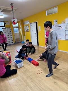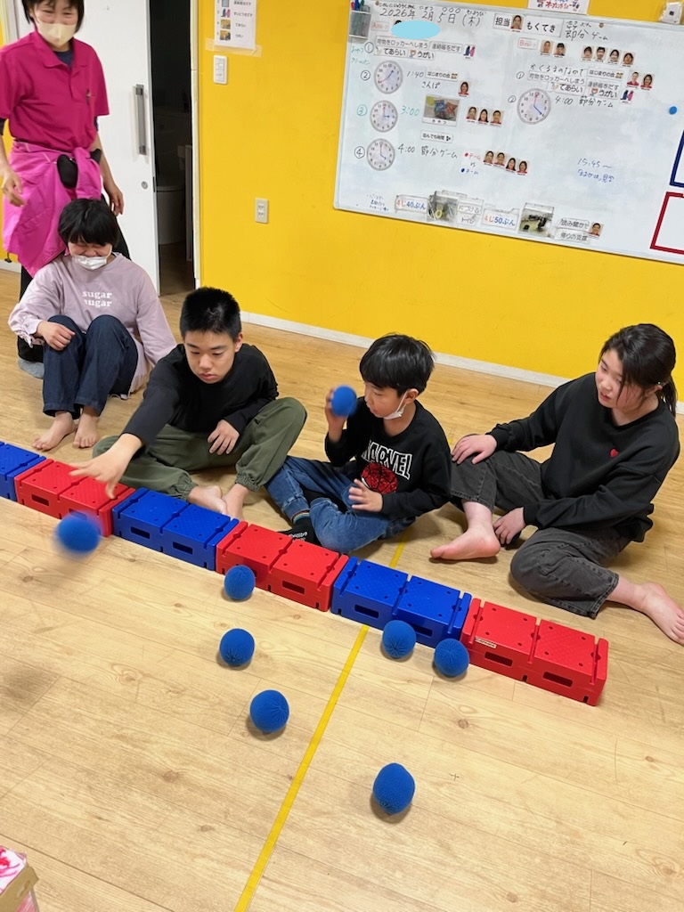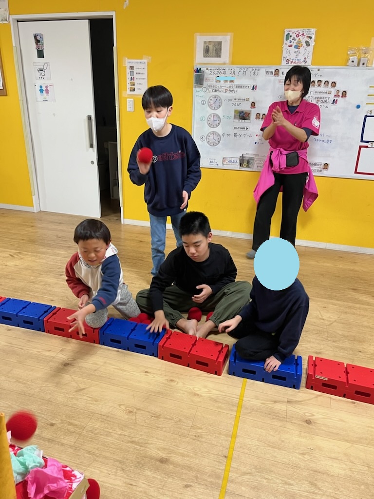 今日は、チーム対抗戦で節分の玉入れゲームをしました👹!