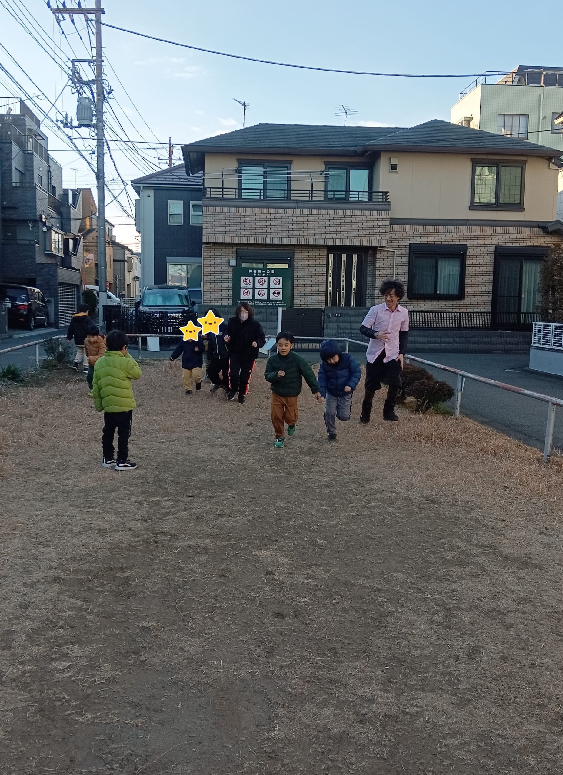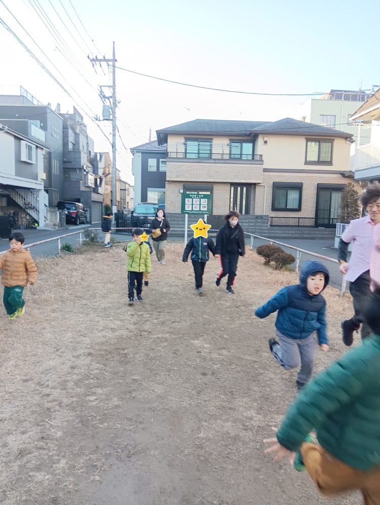 その後お友だちのリクエストで公園の端まで「よ~い、どん!」で走りました。
