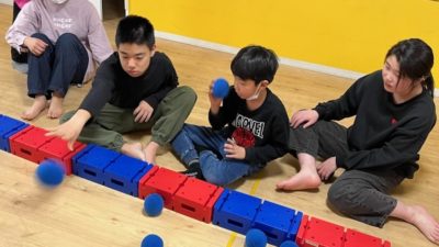 ピンポン玉リレーの後は自由遊びの時間です。