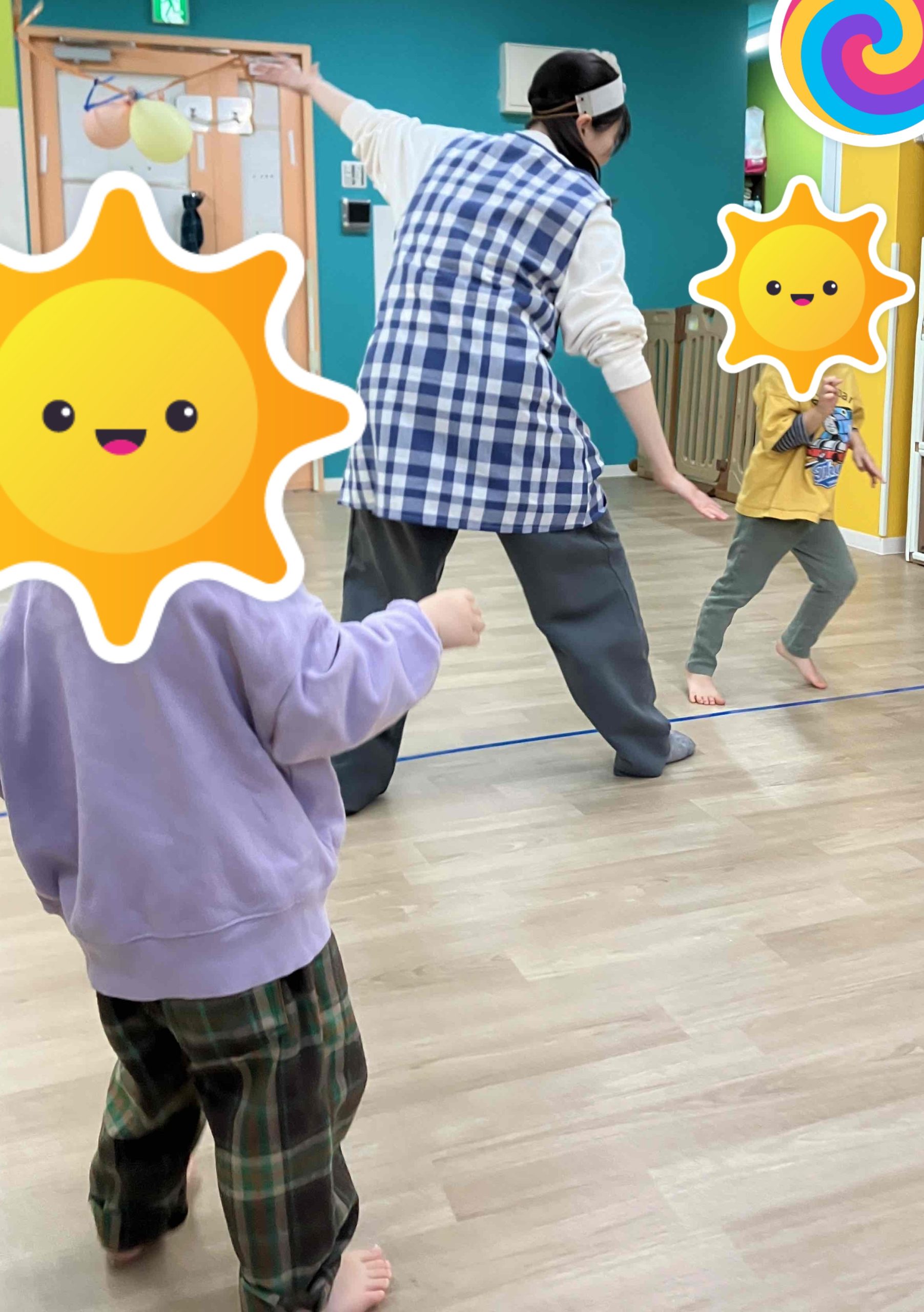 ルールは真ん中に鬼がおり、その鬼にタッチをされないように、向かい側の線まで逃げるゲームです。特に大きいお友だちが大好きな遊びの一つでもあります。小さいお友だちも周りを見ながら行ったり、スタッフと一緒に経験を積んでいったりしています!