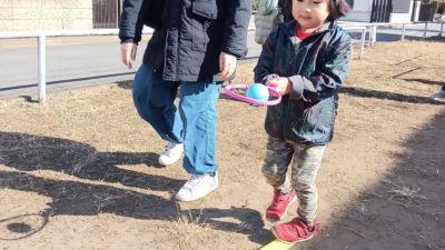 午前中の活動は、お豆の大移動をしました。鬼にタッチされないように上手に逃げていましたよ。鬼にタッチされたお友だちも残念なお顔をしながらも楽しんでいました。