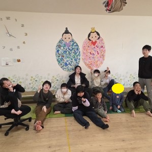 ひなまつりレース🎎 りぼんU 2026.02.26 こんにちは。 今日のりぼんUは早く来所したお友達とおやつの買い物に行き、さんぽしながらゆっくりとりぼんUに戻ってきました🎵 おやつの後のなんでも時間では双六遊び、ベイブレード、ハンモックとそれぞれお友達と楽しい時間を過ごしました😊✨ 室内では先週から取り組んでいたひな祭り工作が完成したのでみんなで協力しながら壁に貼って作品の前でハイチーズ✌😊📷 公園ではひなまつりレースで男雛チームと女雛チームに分かれてのボール運び対決で女雛チームの勝利🎎 りぼんU
