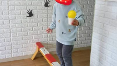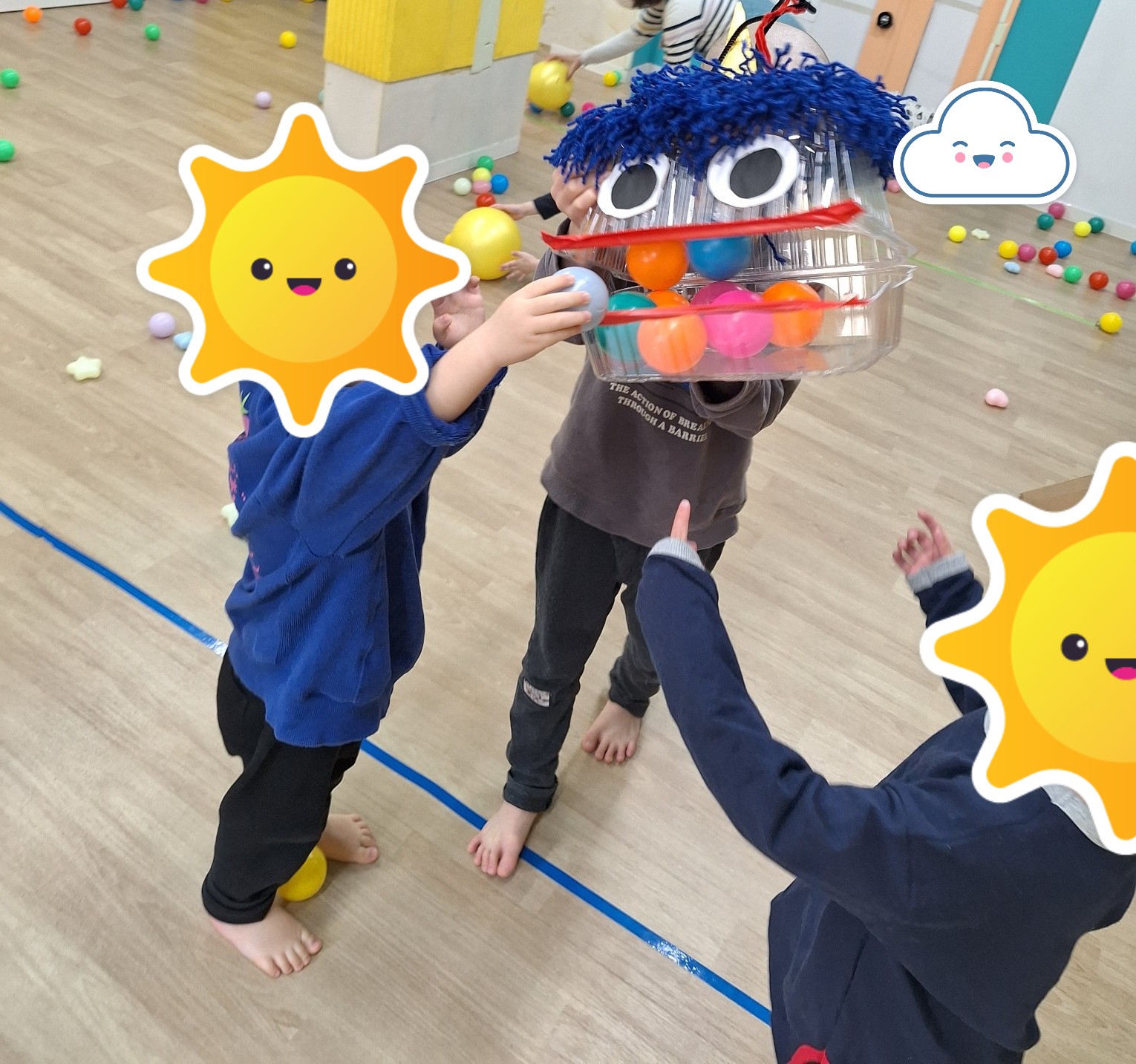 その後は、ボール遊びをしました。鬼にボールを食べさせたり、キャッチボール、ボールシーソーを楽しみました。