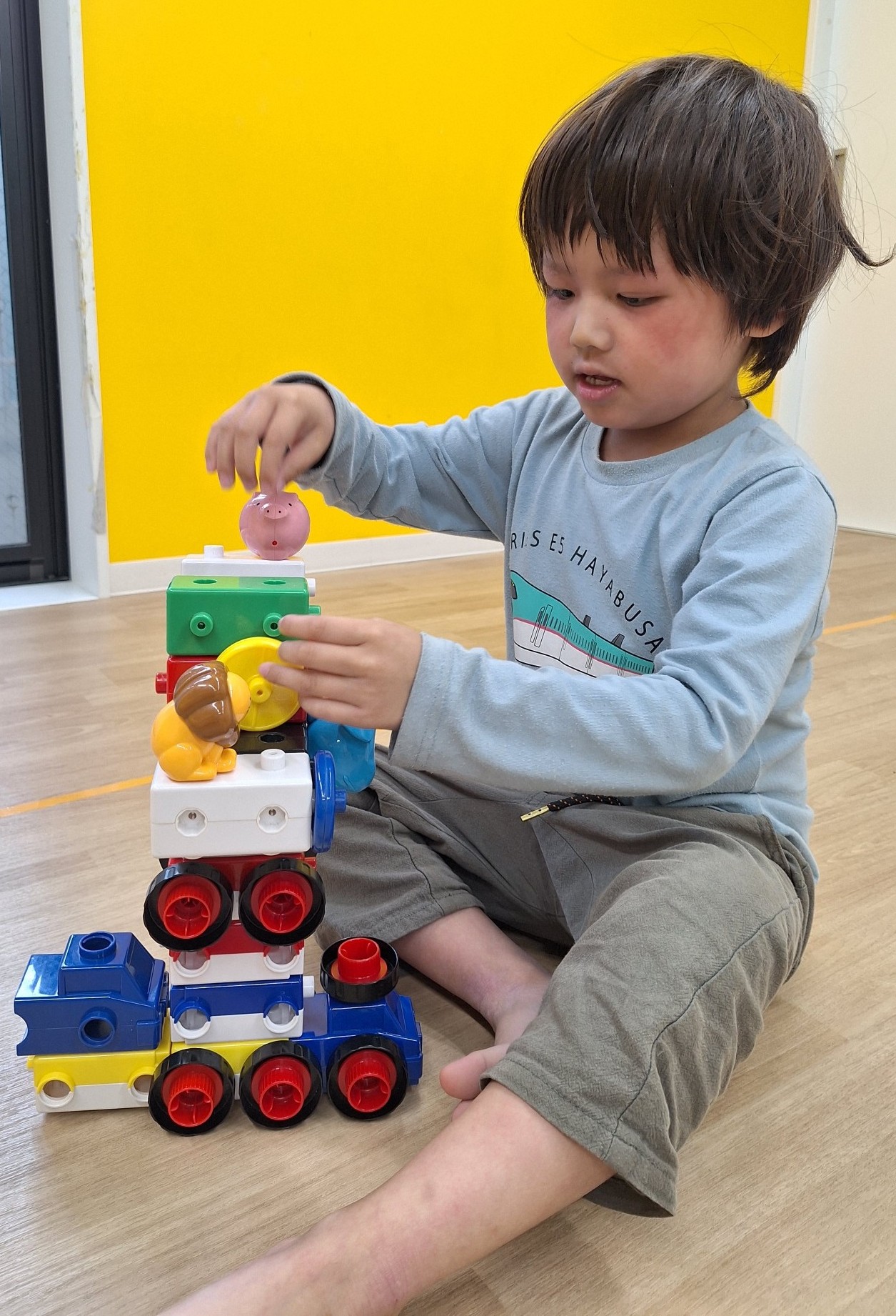 コーナー遊びでは、お絵描き、色型ブロック、磁石遊び、積み木をしました。