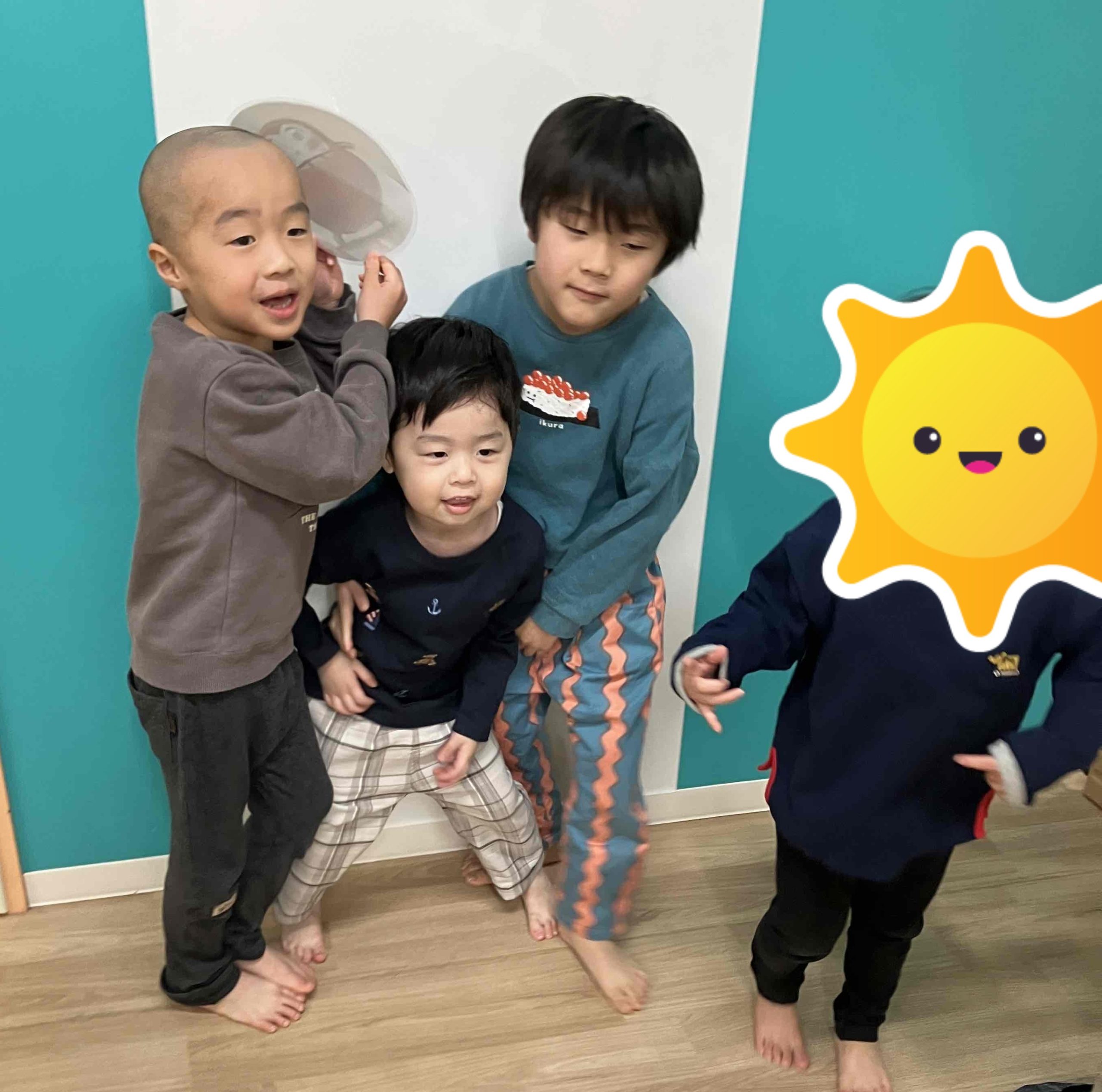 だるまさん役が後ろを向いて、「だるまさんが転んだ」と言います。子どもたちは、だるまさん役が振り向いた時にピタッと止まります。進んだり、止まったりを繰り返し楽しんでいましたよ。だるまさん役になりたいお子さんもたくさんいて、盛り上がりました。