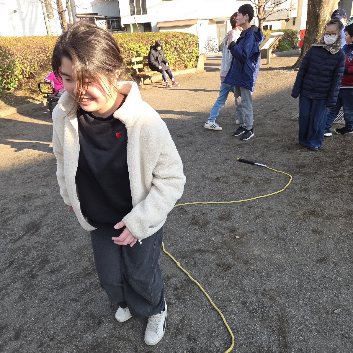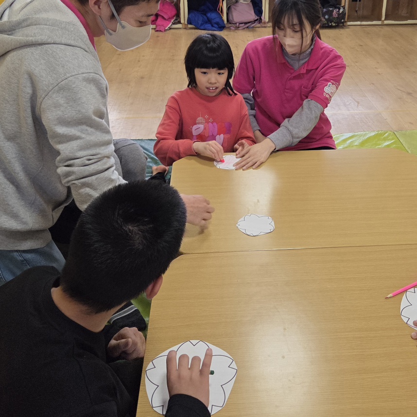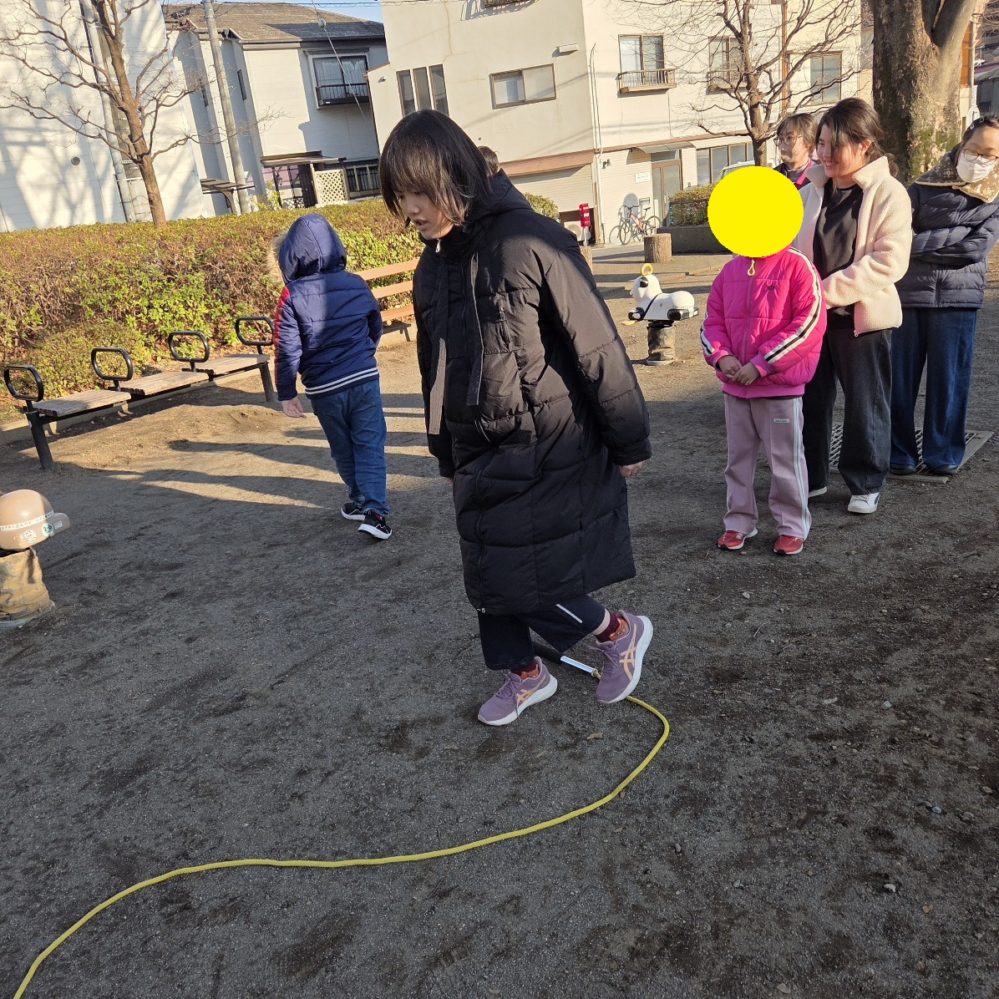 なわとびジャンプ!! りぼんU 2026.03.11 こんにちは。 今日のりぼんUでの前半は室内で4月壁面のさくらのぬり絵をしました🌸一つのさくらを一色で塗るお友達もいればカラフルに塗るお友達もいたので今年はりぼんUの壁にカラフルな桜が咲き乱れそうです😊✨ おやつの後のなんでも時間ではお友達と美容室ごっこをして楽しく遊んでいました🎵 公園ではクネクネに置いた縄跳びを順番に跳んでの”なわとびジャンプ”をしました! りぼんU