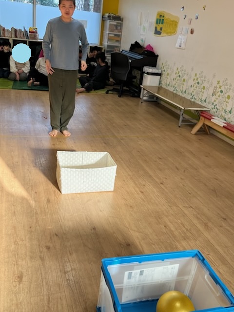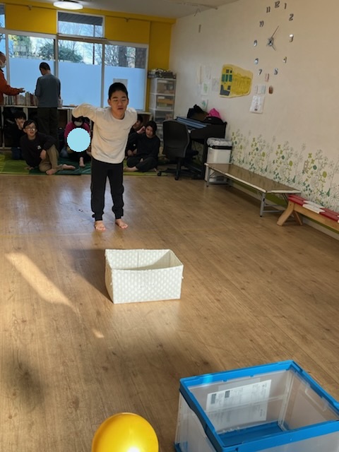 近くのゴールは50点、遠くの難しいゴールは100点として、1人2投ずつしたのですが、闘志に火がついたのか🔥、100点狙いの子が多かったです(笑)