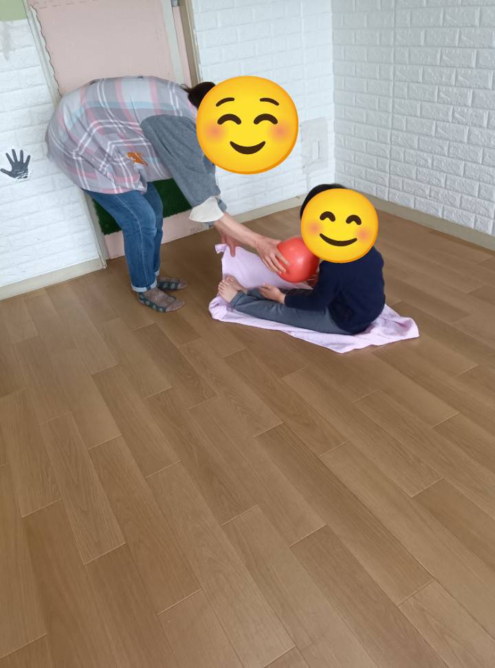 ボールを落とさないよ🏐 ワクワク 2026.03.23 こんにちは。バランス遊びをしたよ。 ボールを落とさないように、タオルに乗りバランスを取ります。「たのしい!」とニコニコで進んでいます。 ボールも手と足で落とさなよう支えていました✨️ 右に手形が見えてきましたよ。ボールを保ちながら手形にもタッチしたよ🌸 やまもと