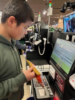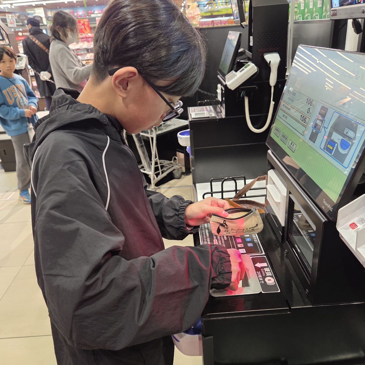 セルフレジを一人一人が操作し、入金と、おつり&レシートを取って財布に入れるまでをやりました😊みんな真剣な眼差し!!で、夢中で操作していましたよ✌💮