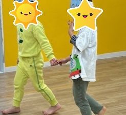 今週は「くもの巣とぞうさん」をしています。今日はやったことがあるお子さんが多かったので、初めから「先頭のぞうさんをやりたい」と先頭のぞうさんをやってくれていました。お友だちの名前を呼び、繋がって歩くことができましたよ。