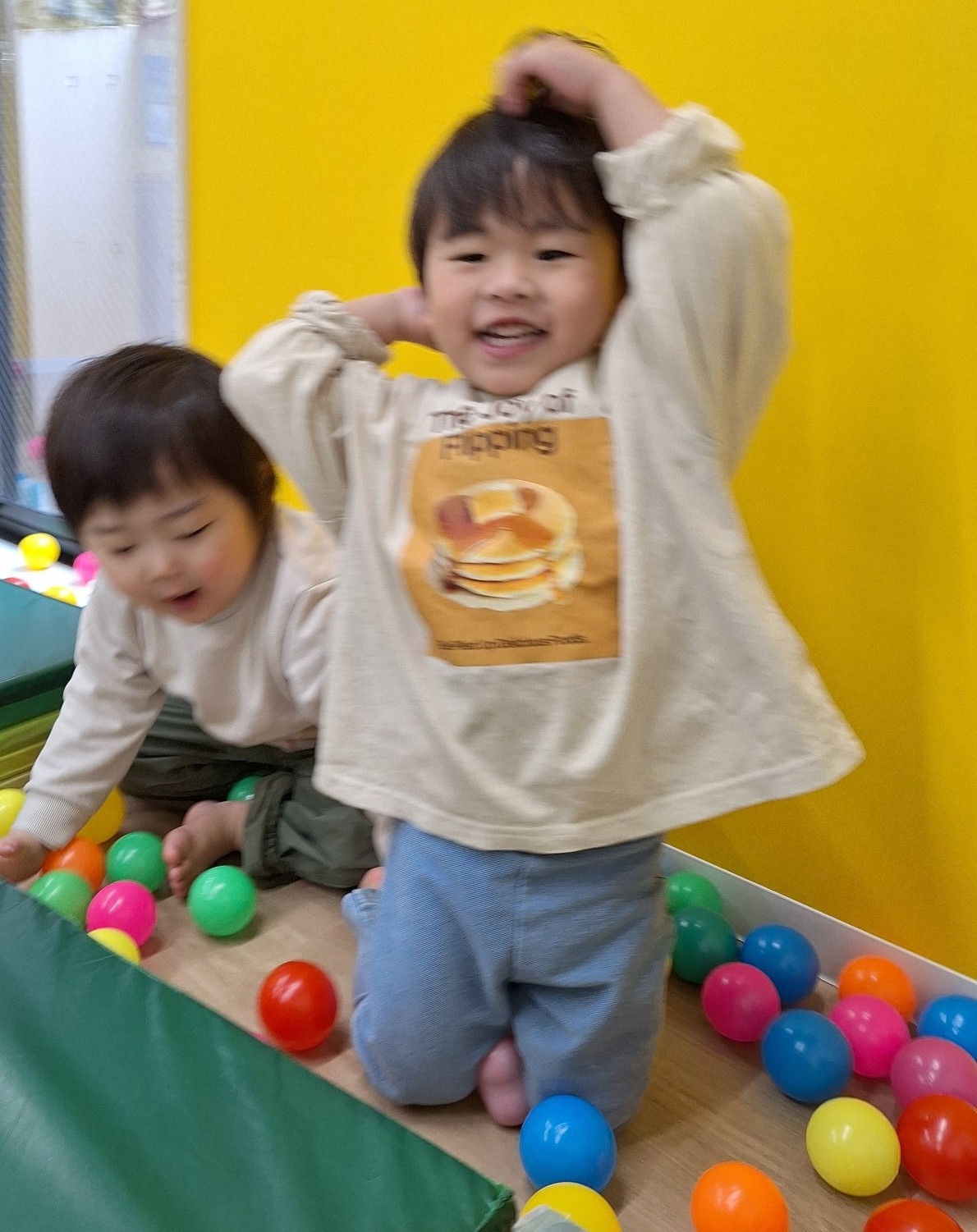 その後はボール遊びをしました。キャッチボールや、ボールプールで体をたくさん動かして遊びました。