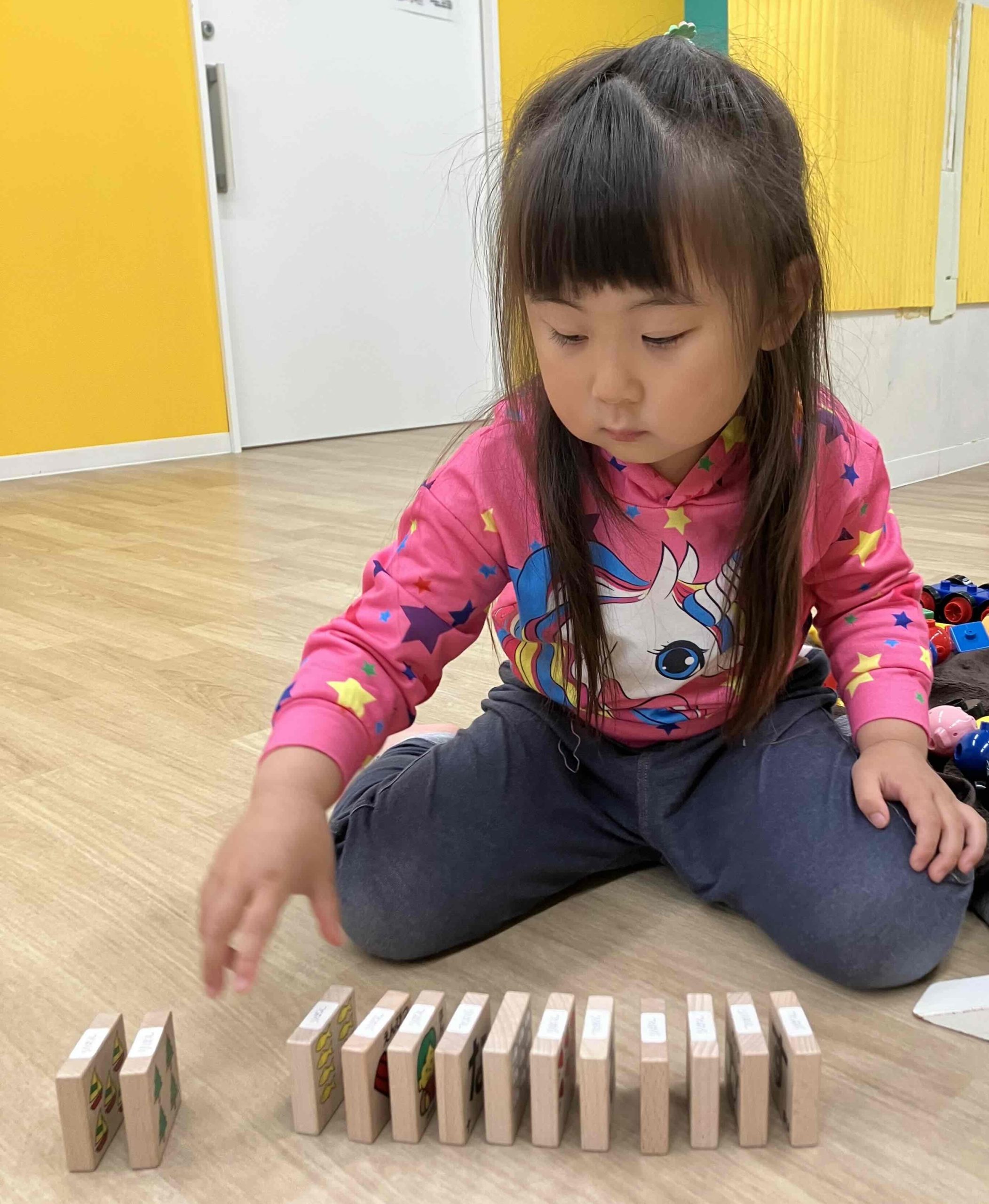 こんにちは。ワクワク上石神井では、朝の時間に使った玩具の片付けを頑張ったお子さんを、「お片付けチャンピオン」として紹介しています。今日もお片付けを頑張って、お名前を呼ばれることを喜んでいましたよ、すごーく頑張ったら「はなまる付けて」とやる気いっぱいです。