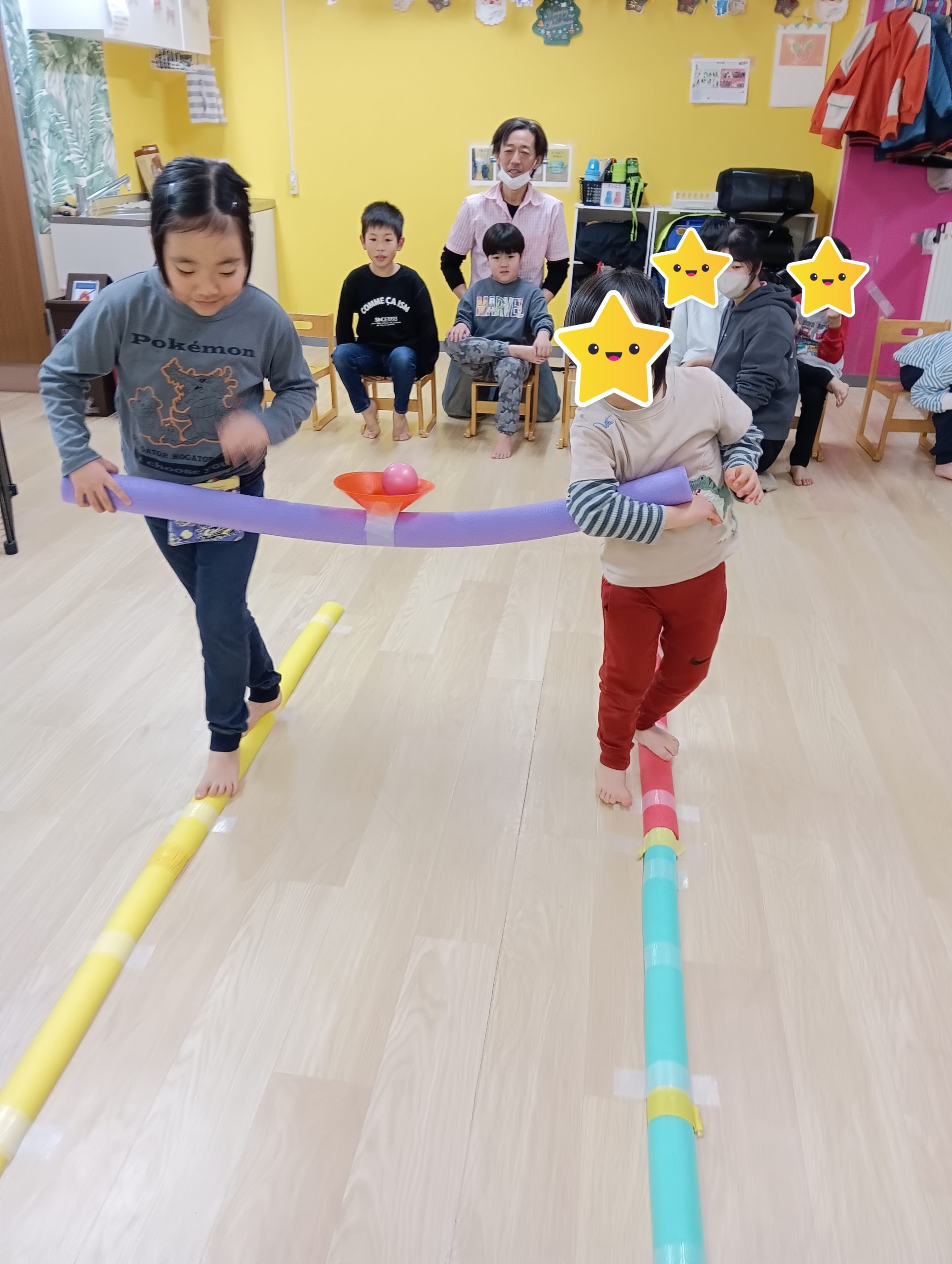 午前中は未就学児童、午後は小学生と時間をわけて支援を行っております。